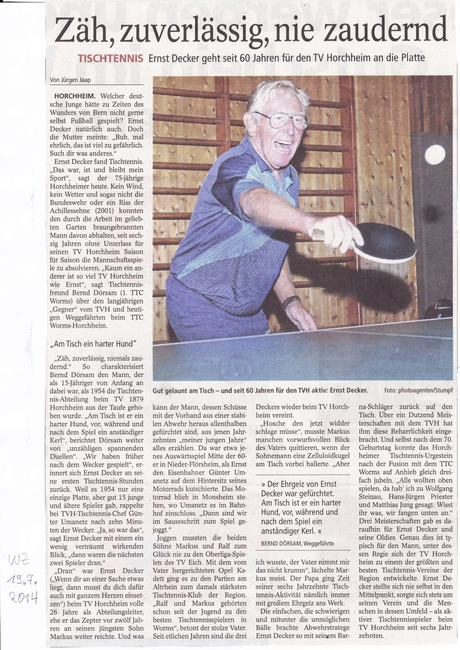 Ernst Decker seit 60 Jahren für den TV Horchheim an der Platte.